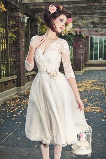 Knee type marriage gauze also belong to short gown, long skirt around the knee.
